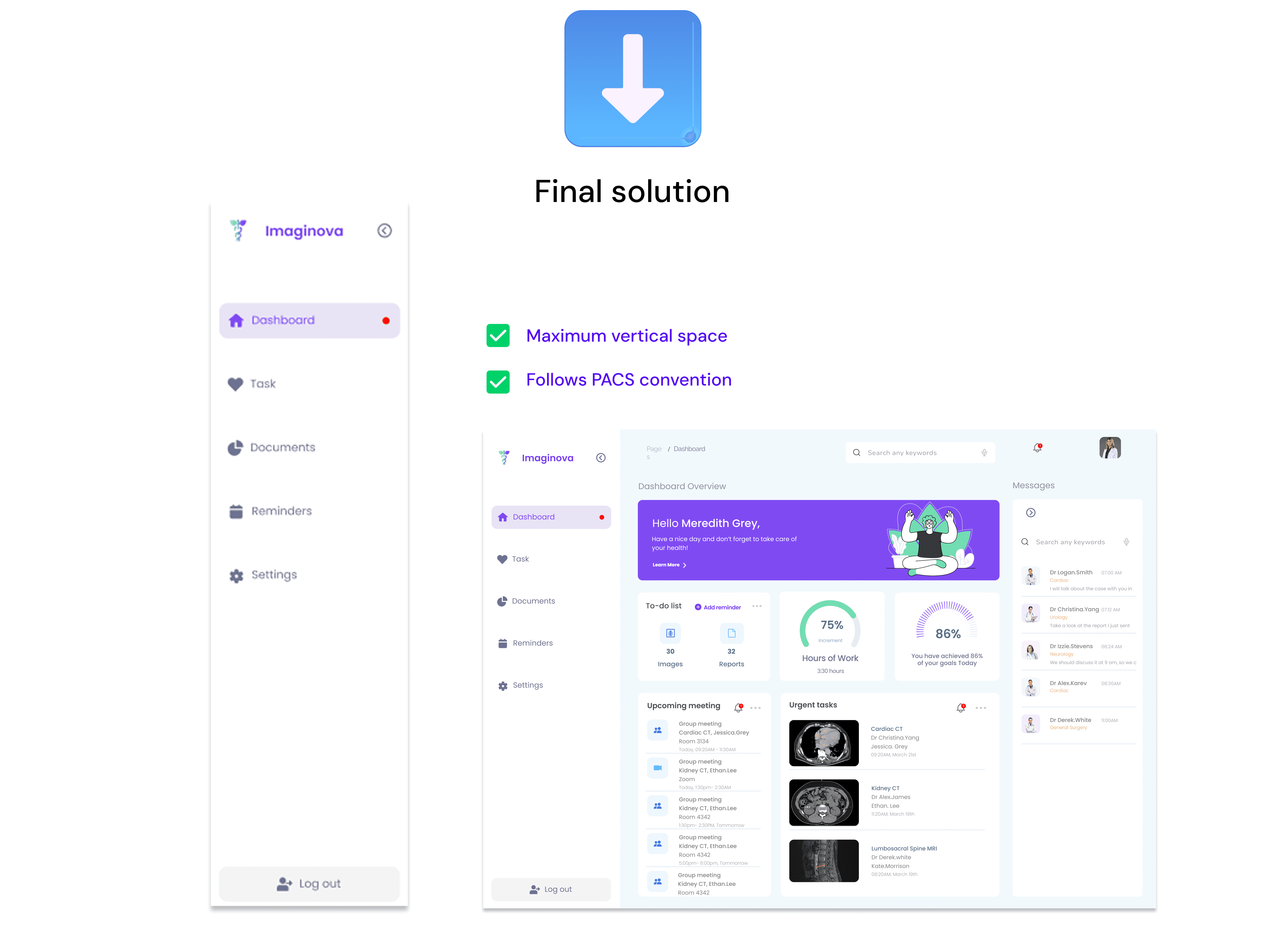 "Every millimeter of vertical space counts for medical images," explained a radiologist during testing. Our top navigation was taking away crucial space needed for examining MRIs and CT scans.